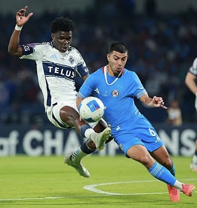 Picture : Erik Lira (in blue) and Cruz Azul, here face to Emmanuel Sabbi (Vancouver), are the leaders in CONCACAF.