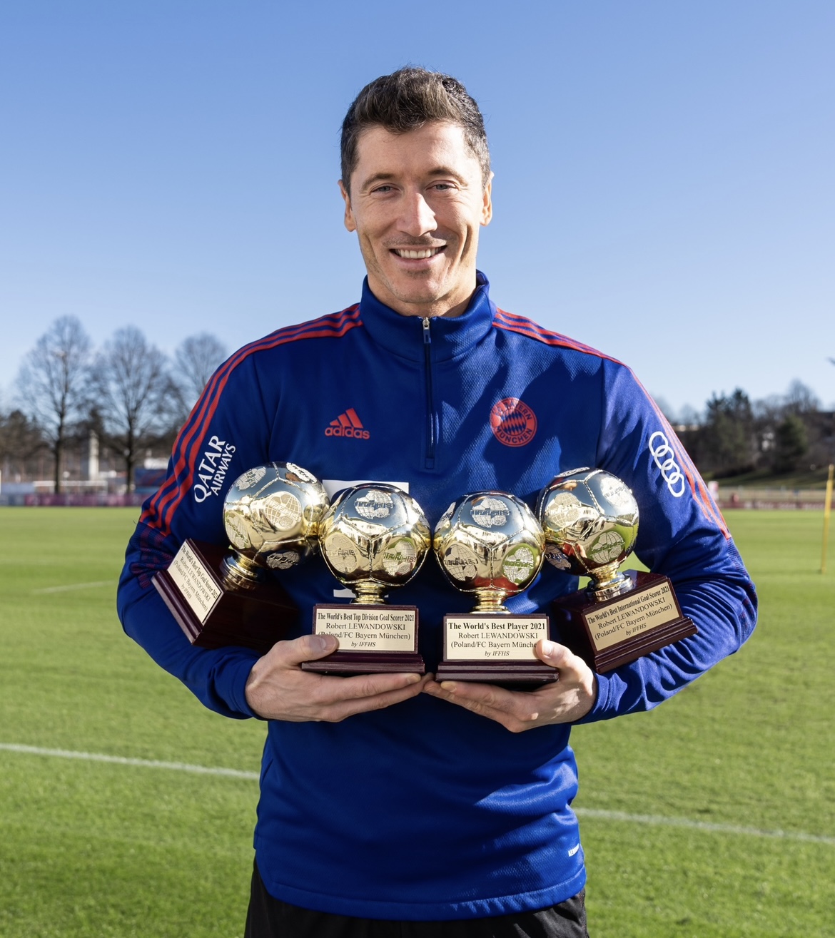 Picture : Robert Lewandowski, winner of 4 IFFHS Awards in the same year 2021, the year of his record !